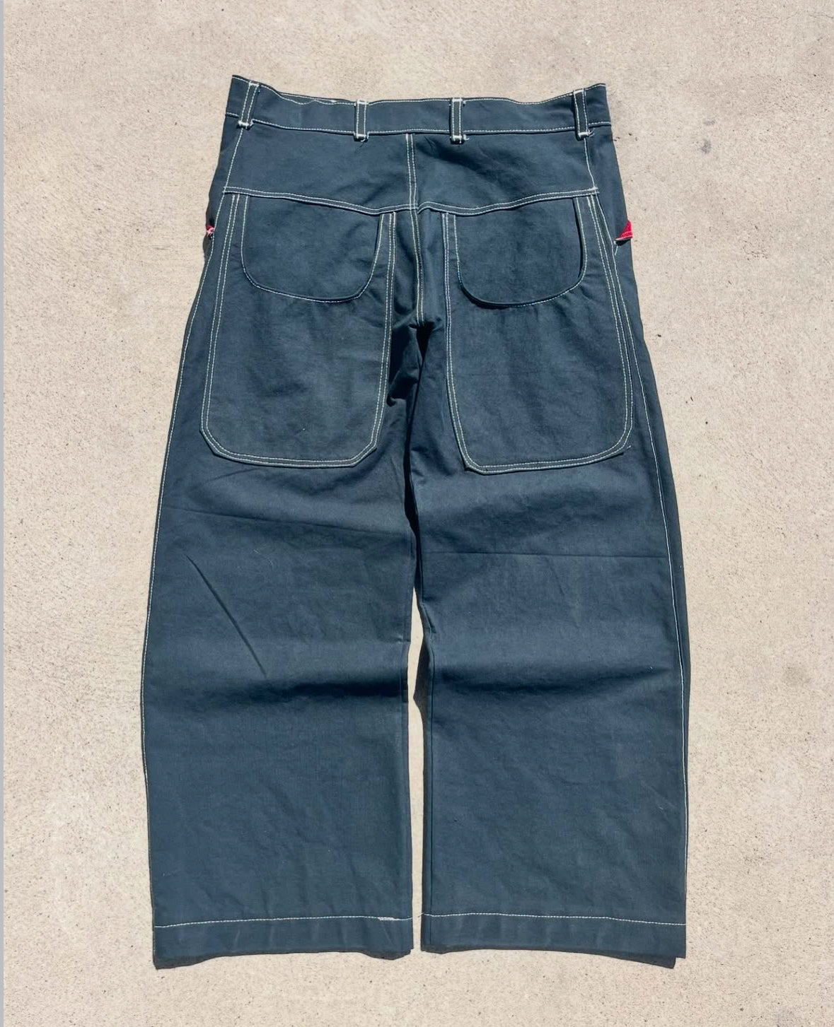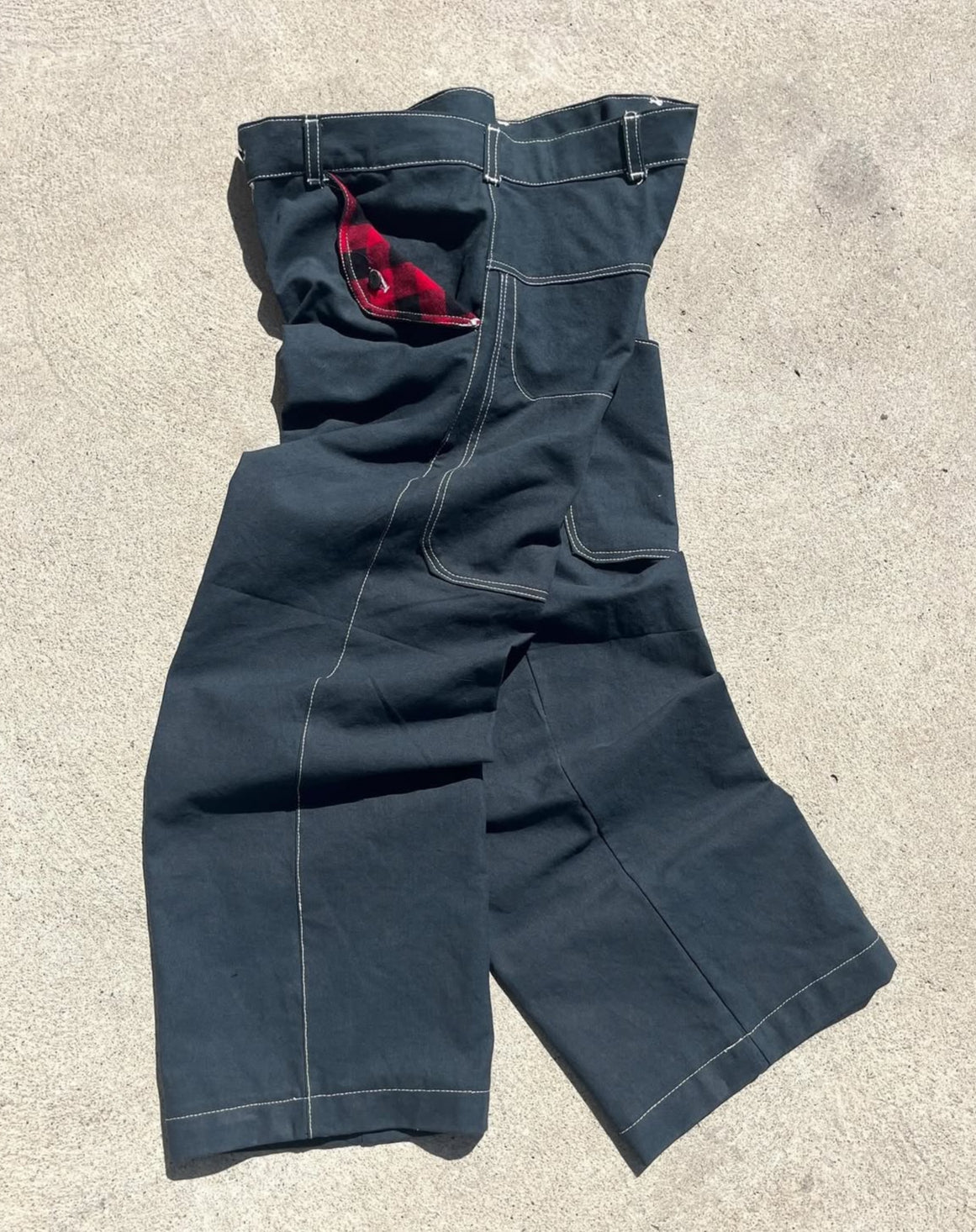 Cut from rugged 14oz black duck canvas, this pant brings a classic mule-pocket workwear build into a clean, modern silhouette. The fit sits high on the waist with a roomy top block and a relaxed, straight leg that maintains its structure thanks to the density of the canvas. The fabric starts stiff with a dry, durable hand, softening slowly to develop creasing, texture, and the signature patina duck canvas is known for.
