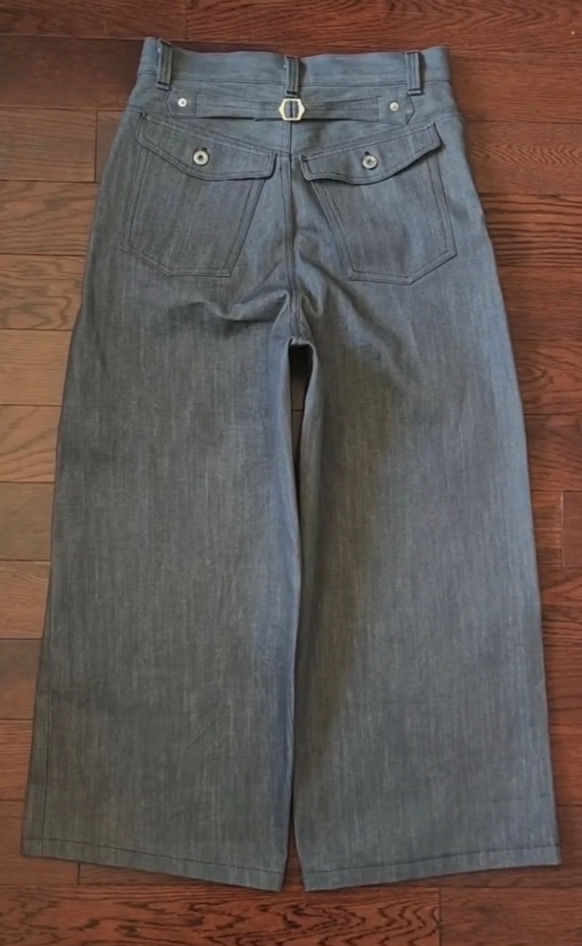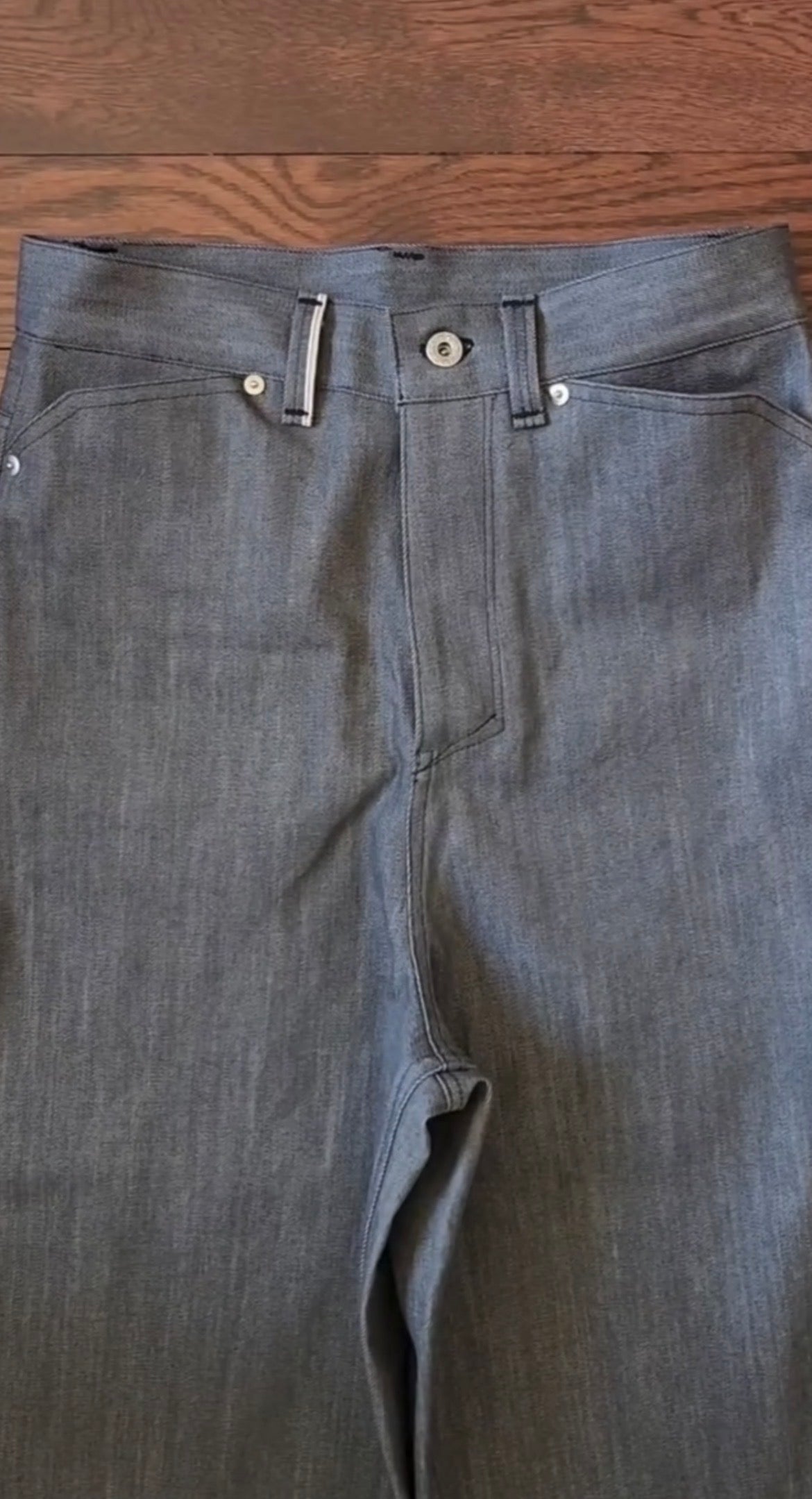 Cut from rugged 15oz selvedge denim, this pant delivers a structured wide-straight silhouette with clean workwear detailing. The fit sits high on the waist with a full top block and a straight leg that holds its width from hip to hem, giving the denim a weighty, architectural drape. The 15oz fabric starts off crisp and dry, softening through wear to develop deep creases, vertical grain, and bold, high-contrast fades.
